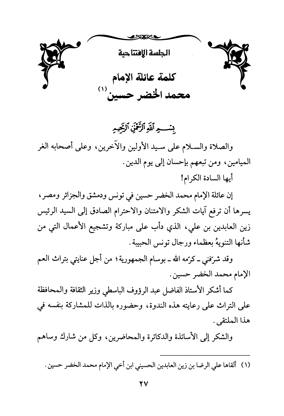 كلمة عائلة الإمام محمد الخضر حسين (¬1)