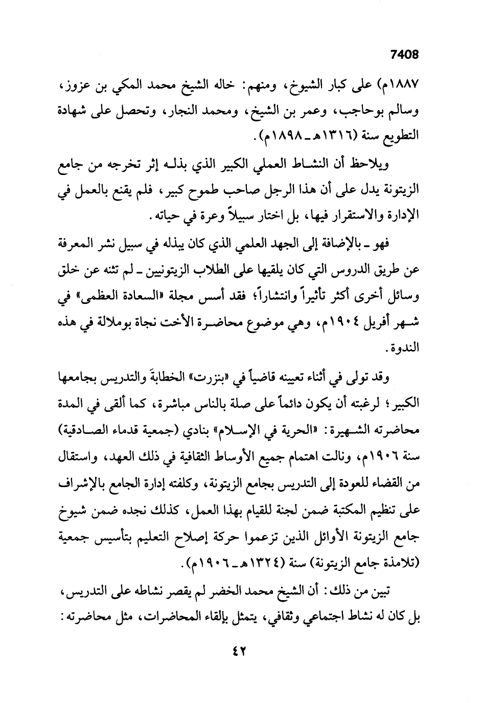 تبين من ذلك: أن الشيخ محمد الخضر لم يقصر نشاطه على التدريس، بل كان له نشاط اجتماعي وثقافي، يتمثل بإلقاء المحاضرات، مثل محاضرته: