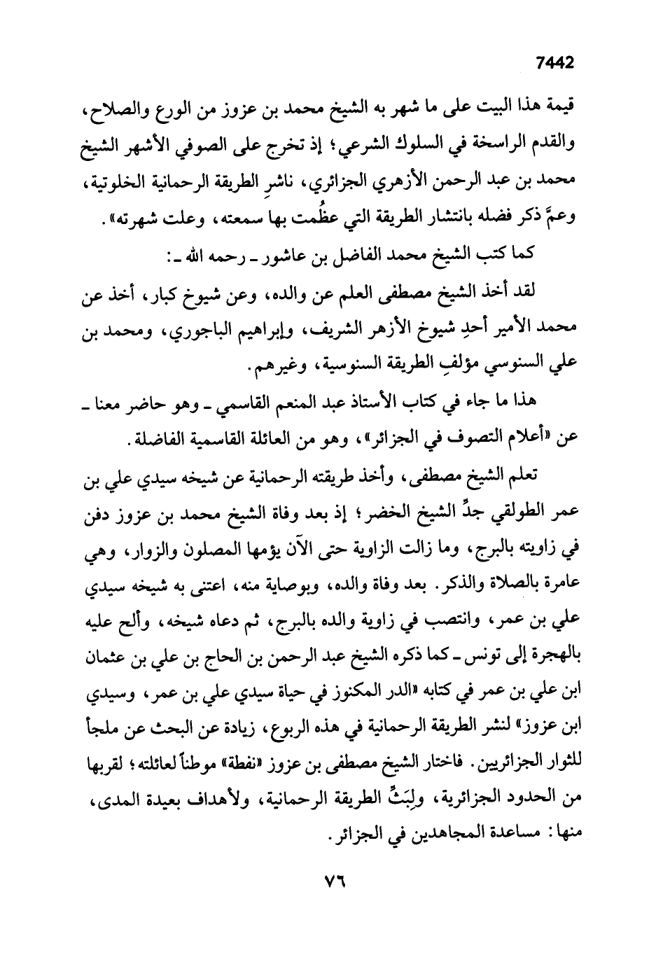 هذا ما جاء في كتاب الأستاذ عبد المنعم القاسمي -وهو حاضر معنا- عن "أعلام التصوف في الجزائر"، وهو من العائلة القاسمية الفاضلة.