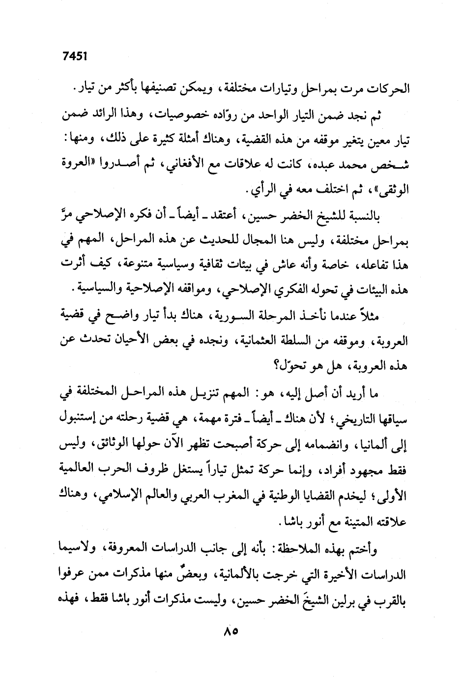 وأختم بهذه الملاحظة: بأنه إلى جانب الدراسات المعروفة، ولاسيما الدراسات الأخيرة التي خرجت بالألمانية، وبعضٌ منها مذكرات ممن عرفوا بالقرب في برلين الشيخَ الخضر حسين، وليست مذكرات أنور باشا فقط، فهذه
