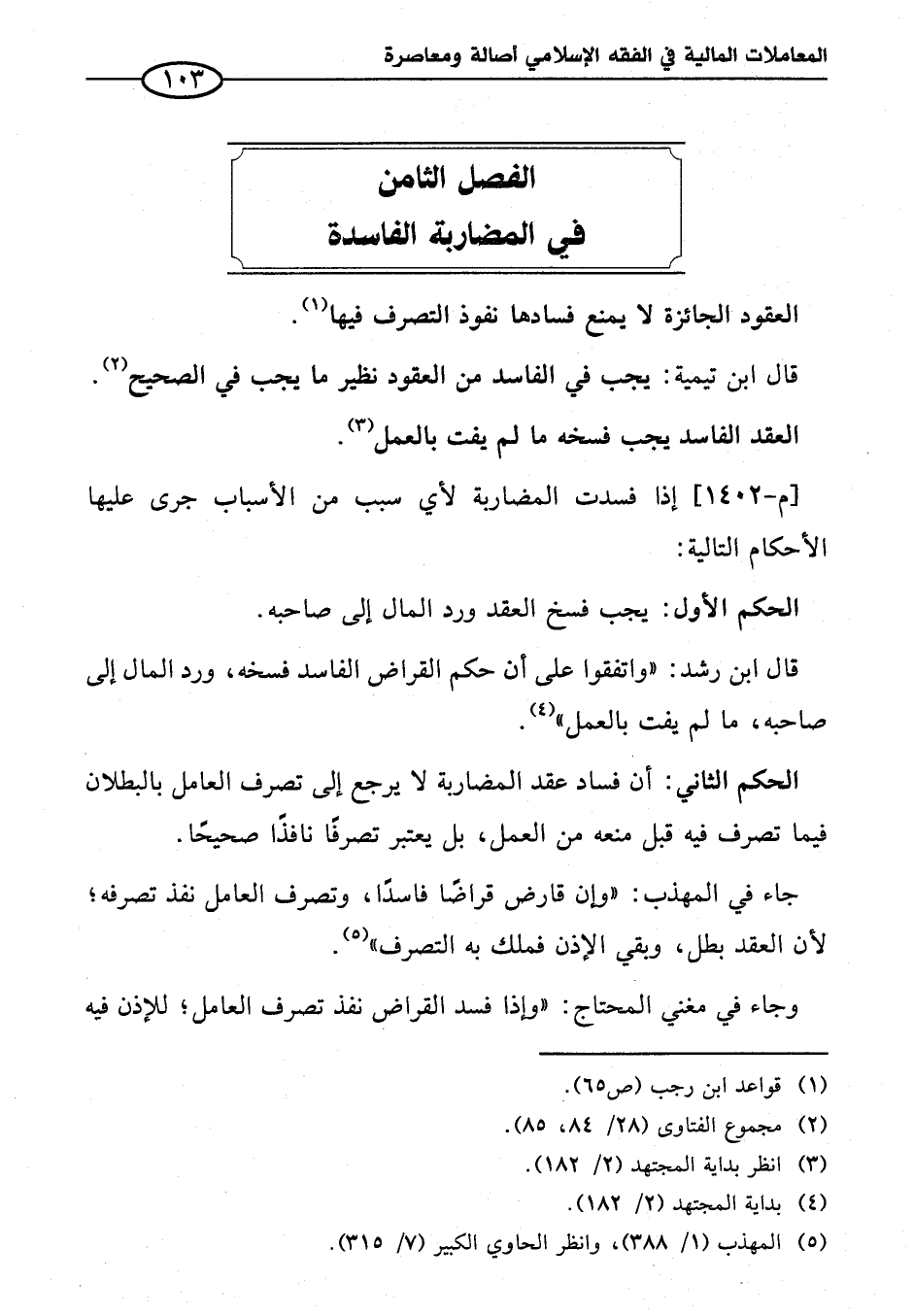 [م - ١٤٠٢] إذا فسدت المضاربة لأي سبب من الأسباب جرى عليها الأحكام التالية: