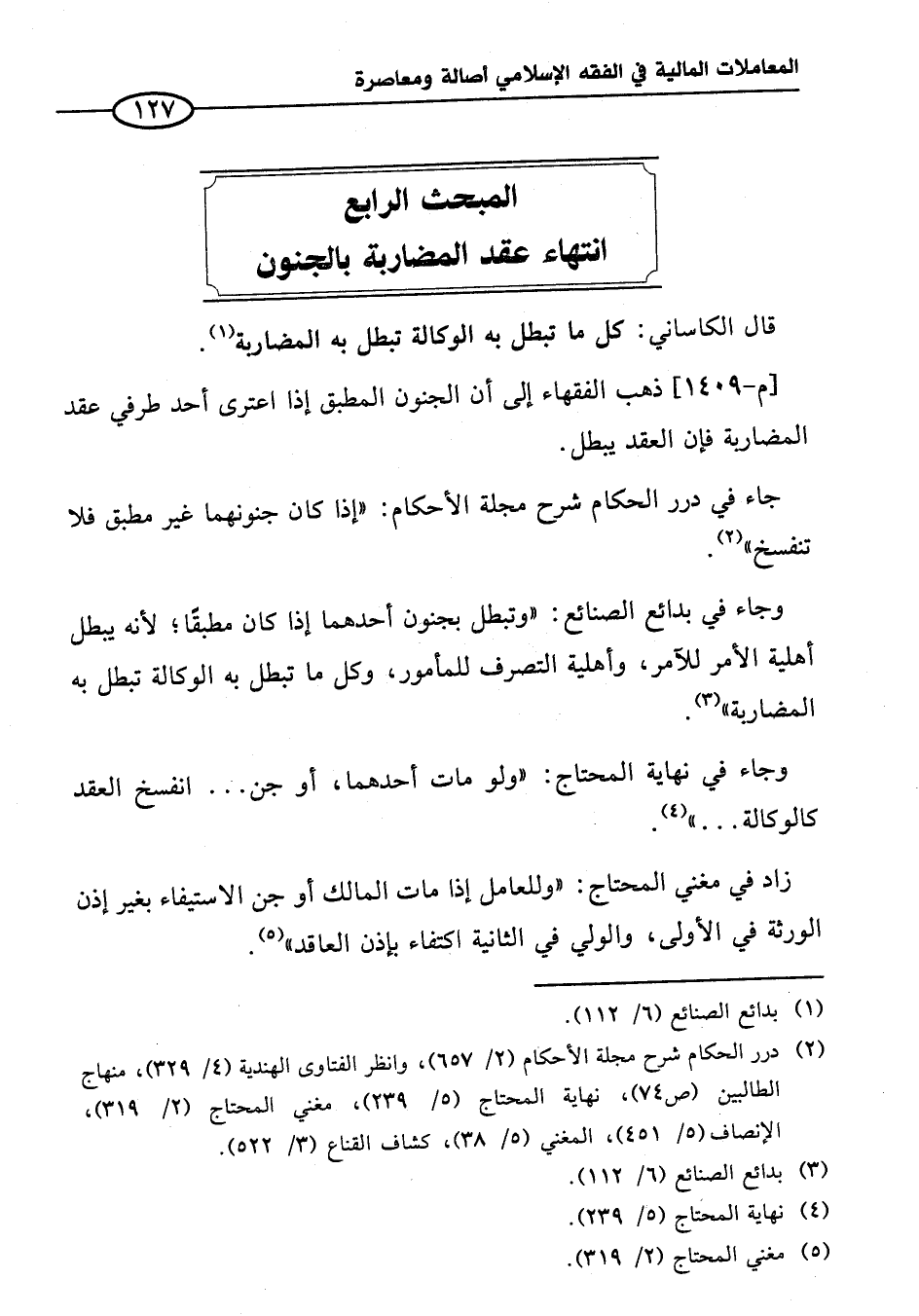 المبحث الرابع انتهاء عقد المضاربة بالجنون