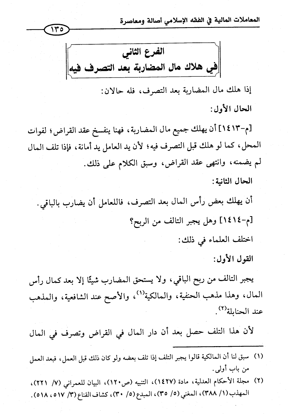 الفرع الثاني في هلاك مال المضاربة بعد التصرف فيه