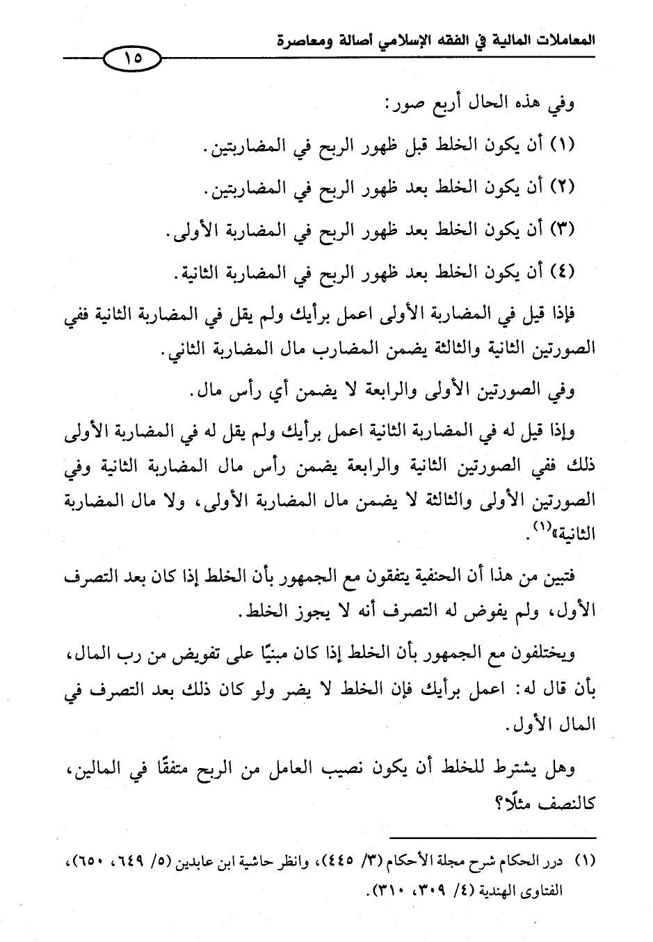 (¬١) درر الحكام شرح مجلة الأحكام (٣/ ٤٤٥)، وانظر حاشية ابن عابدين (٥/ ٦٤٩، ٦٥٠)، الفتاوى الهندية (٤/ ٣٠٩، ٣١٠).