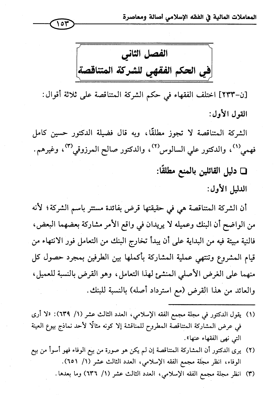 الفصل الثاني في الحكم الفقهي للشركة المتناقصة
