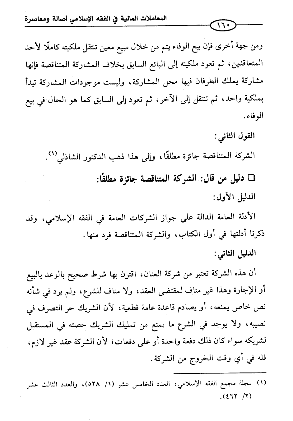الشركة المتناقصة جائزة مطلقًا، وإلى هذا ذهب الدكتور الشاذلي (¬١).