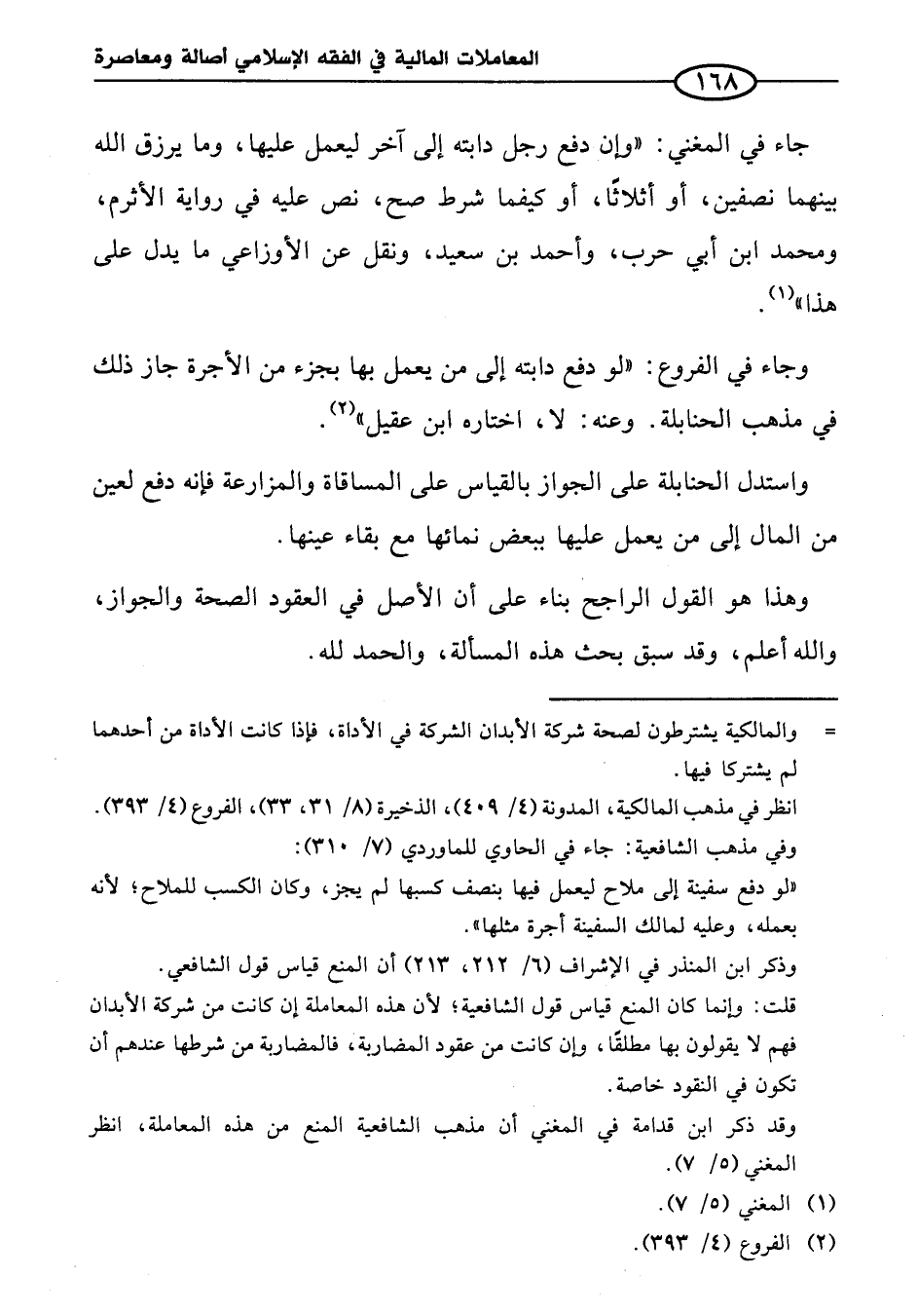 وجاء في الفروع: "لو دفع دابته إلى من يعمل بها بجزء من الأجرة جاز ذلك في مذهب الحنابلة. وعنه: لا، اختاره ابن عقيل" (¬٢).