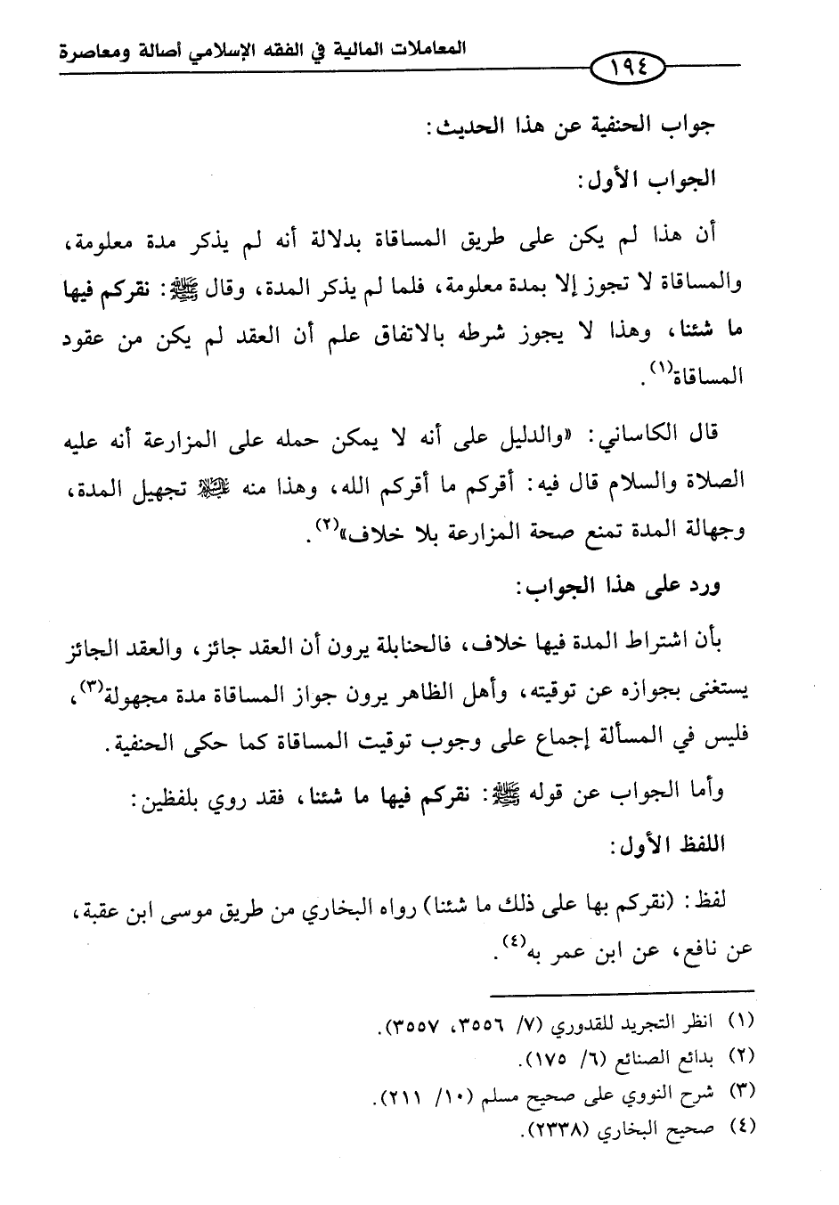 أن هذا لم يكن على طريق المساقاة بدلالة أنه لم يذكر مدة معلومة، والمساقاة لا تجوز إلا بمدة معلومة، فلما لم يذكر المدة، وقال - صلى الله عليه وسلم -: نقركم فيها ما شئنا، وهذا لا يجوز شرطه بالاتفاق علم أن العقد لم يكن من عقود المساقاة (¬١).