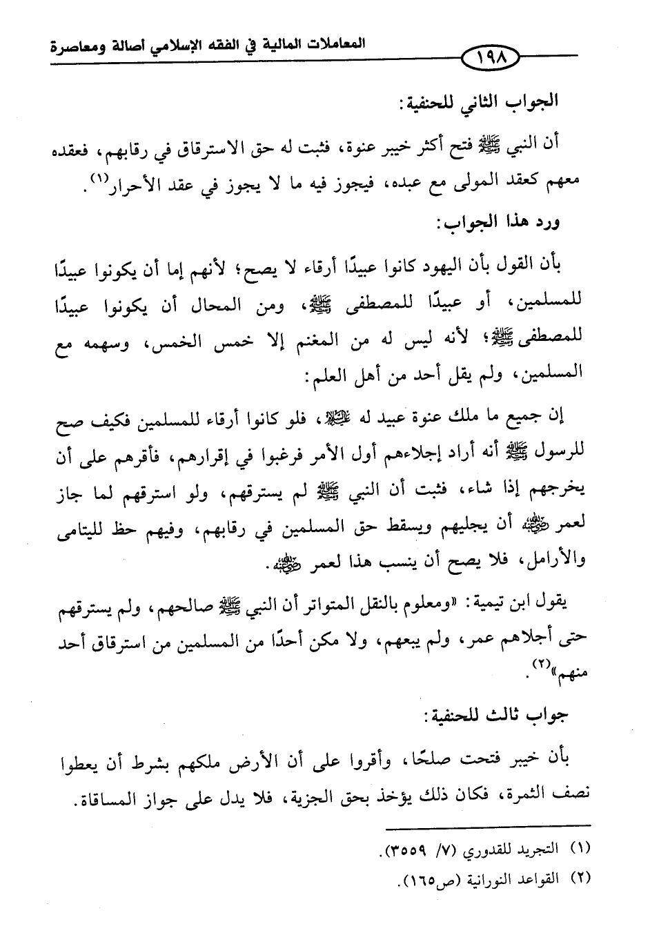 بأن القول بأن اليهود كانوا عبيدًا أرقاء لا يصح؛ لأنهم إما أن يكونوا عبيدًا للمسلمين، أو عبيدًا للمصطفى - صلى الله عليه وسلم -، ومن المحال أن يكونوا عبيدًا للمصطفى - صلى الله عليه وسلم -؛ لأنه ليس له من المغنم إلا خمس الخمس، وسهمه مع المسلمين، ولم يقل أحد من أهل العلم: