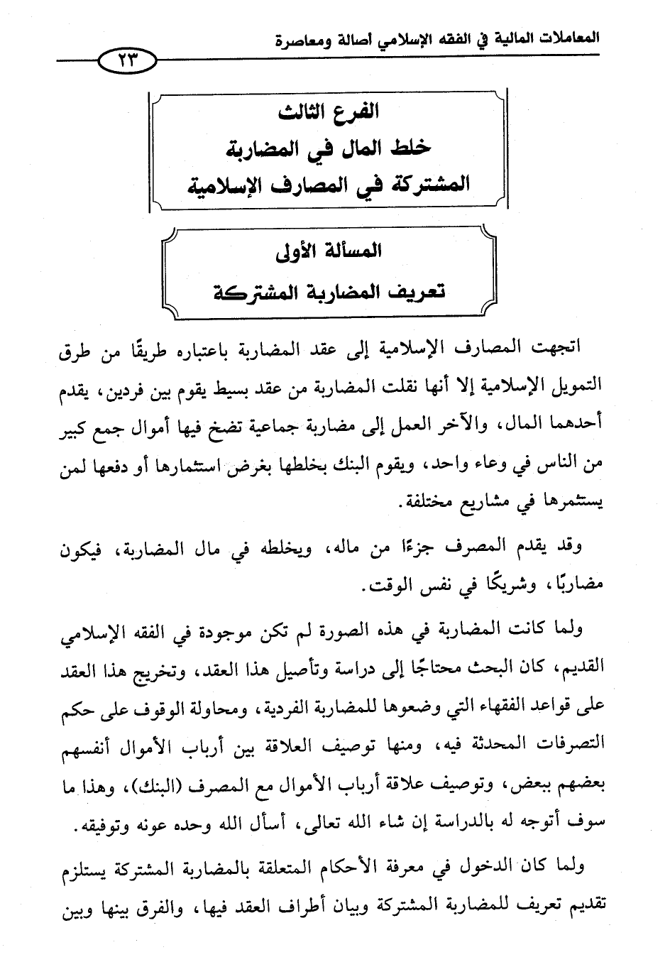 الفرع الثالث خلط المال في المضاربة المشتركة في المصارف الإِسلامية
