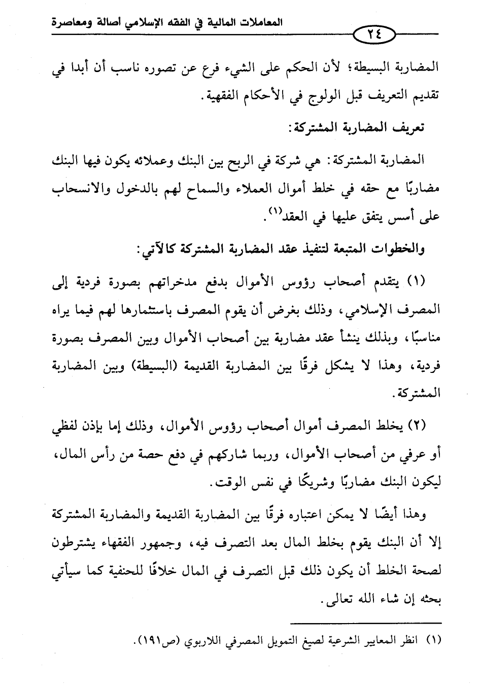 (¬١) انظر المعايير الشرعية لصيغ التمويل المصرفي اللاربوي (ص ١٩١).