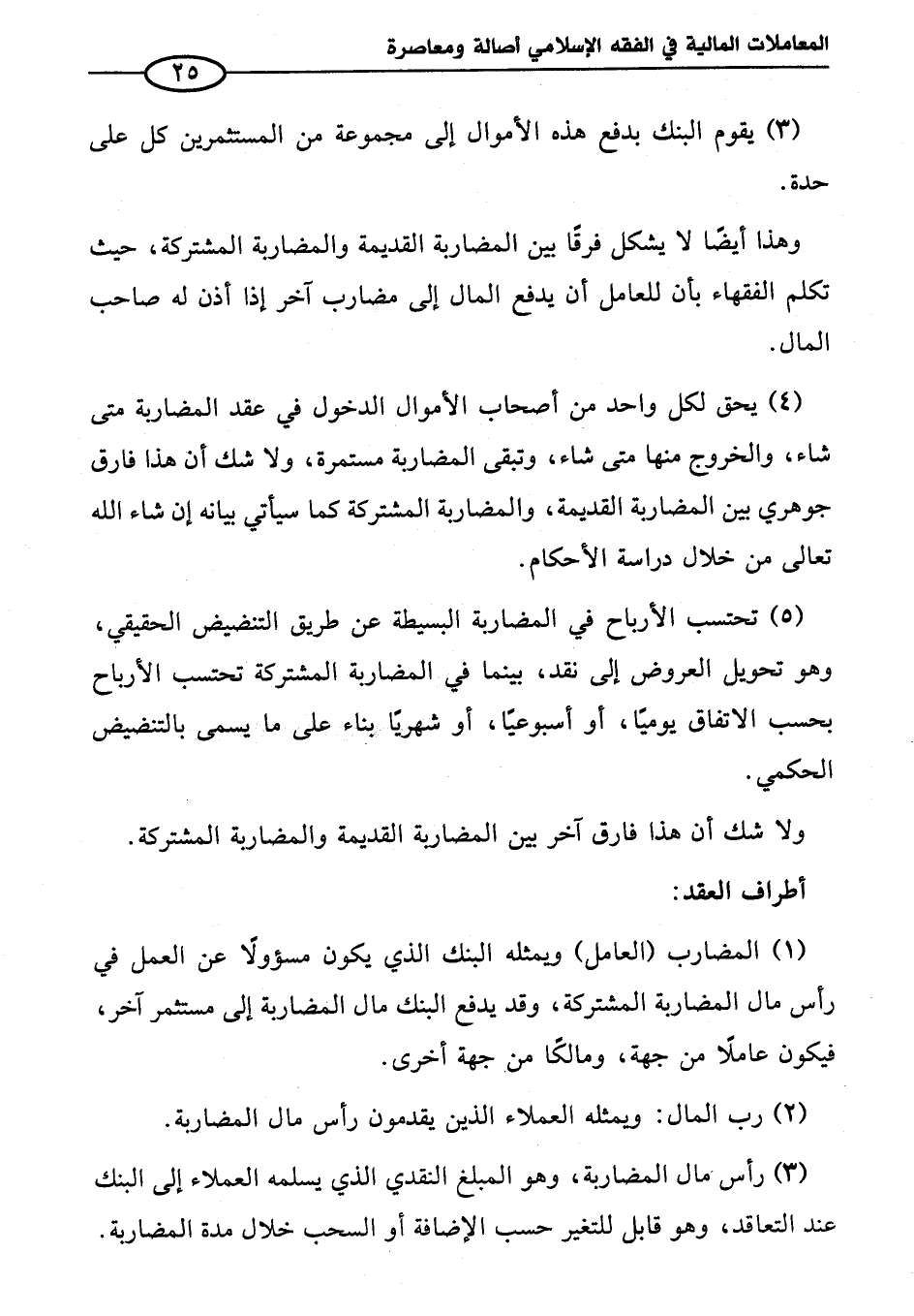 (٥) تحتسب الأرباح في المضاربة البسيطة عن طريق التنضيض الحقيقي، وهو تحويل العروض إلى نقد، بينما في المضاربة المشتركة تحتسب الأرباح بحسب الاتفاق يوميًا، أو أسبوعيًا، أو شهريًا يناء على ما يسمى بالتنضيض الحكمي.