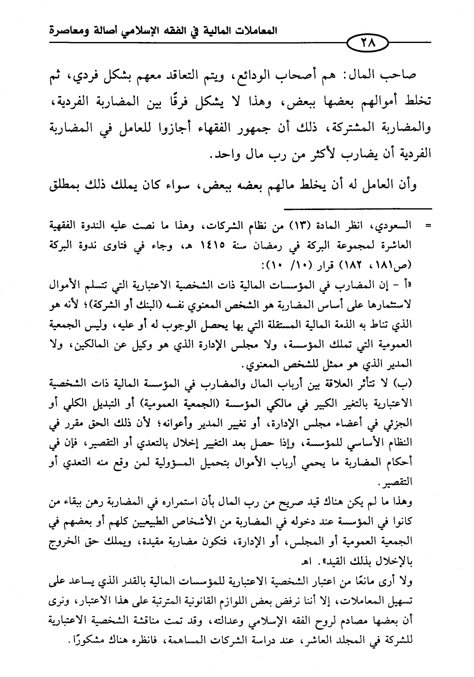 = السعودي، انظر المادة (١٣) من نظام الشركات، وهذا ما نصت عليه الندوة الفقهية العاشرة لمجموعة البركة في رمضان سنة ١٤١٥ هـ