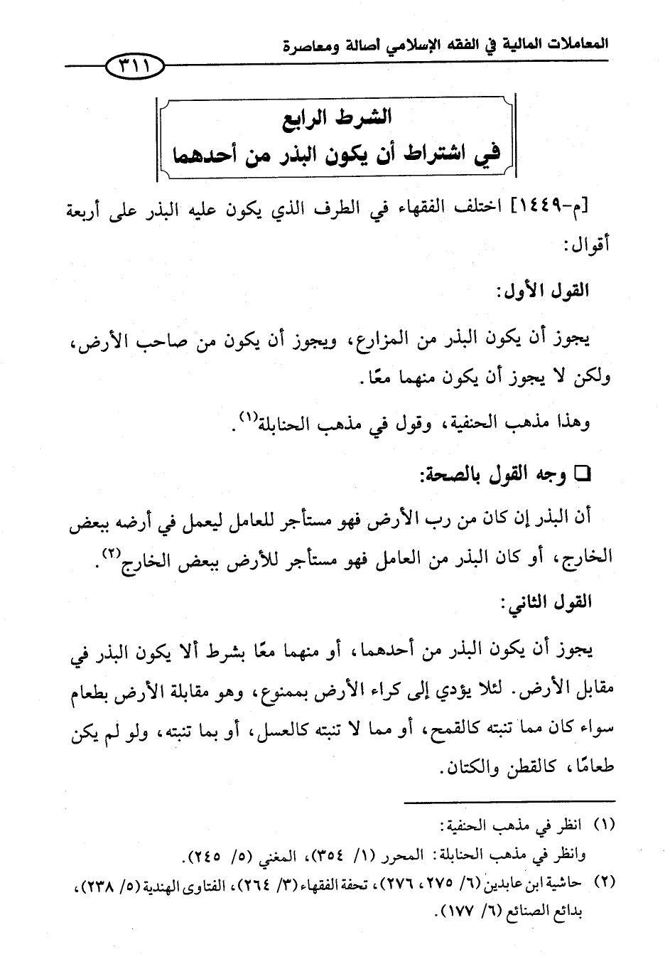 يجوز أن يكون البذر من المزارع، ويجوز أن يكون من صاحب الأرض، ولكن لا يجوز أن يكون منهما معًا.