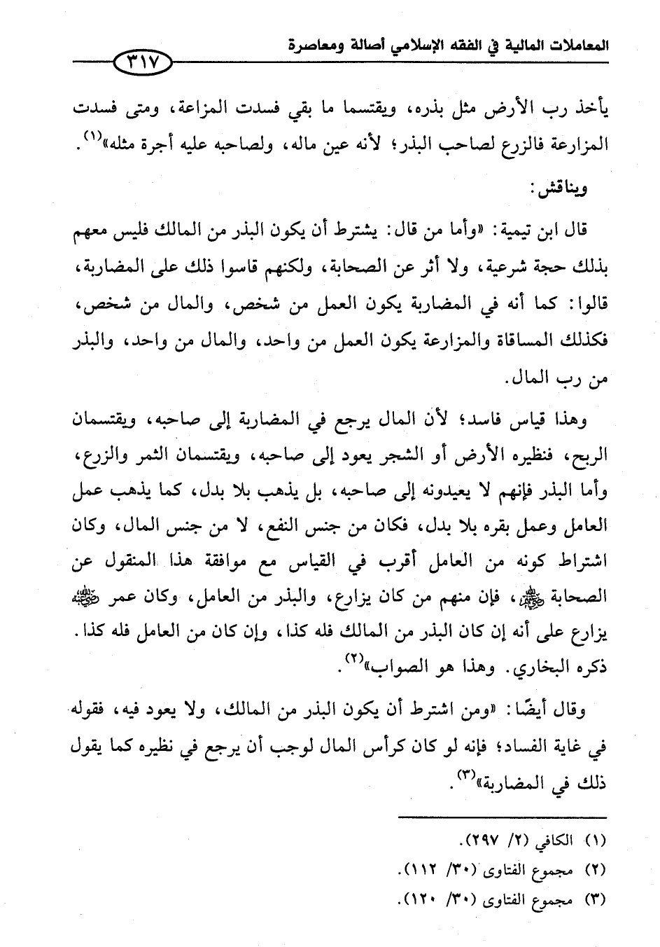 وقال أيضاً: "ومن اشترط أن يكون البذر من المالك، ولا يعود فيه، فقوله في غاية الفساد؛ فإنه لو كان كرأس المال لوجب أن يرجع في نظيره كما يقول ذلك في المضاربة" (¬٣).