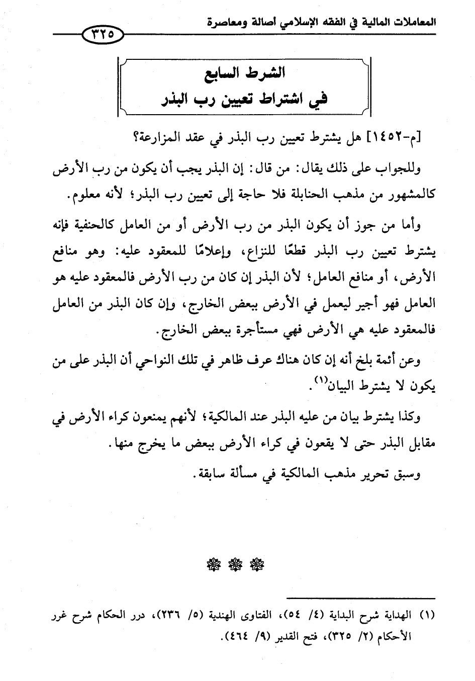 [م - ١٤٥٢] هل يشترط تعيين رب البذر في عقد المزارعة؟