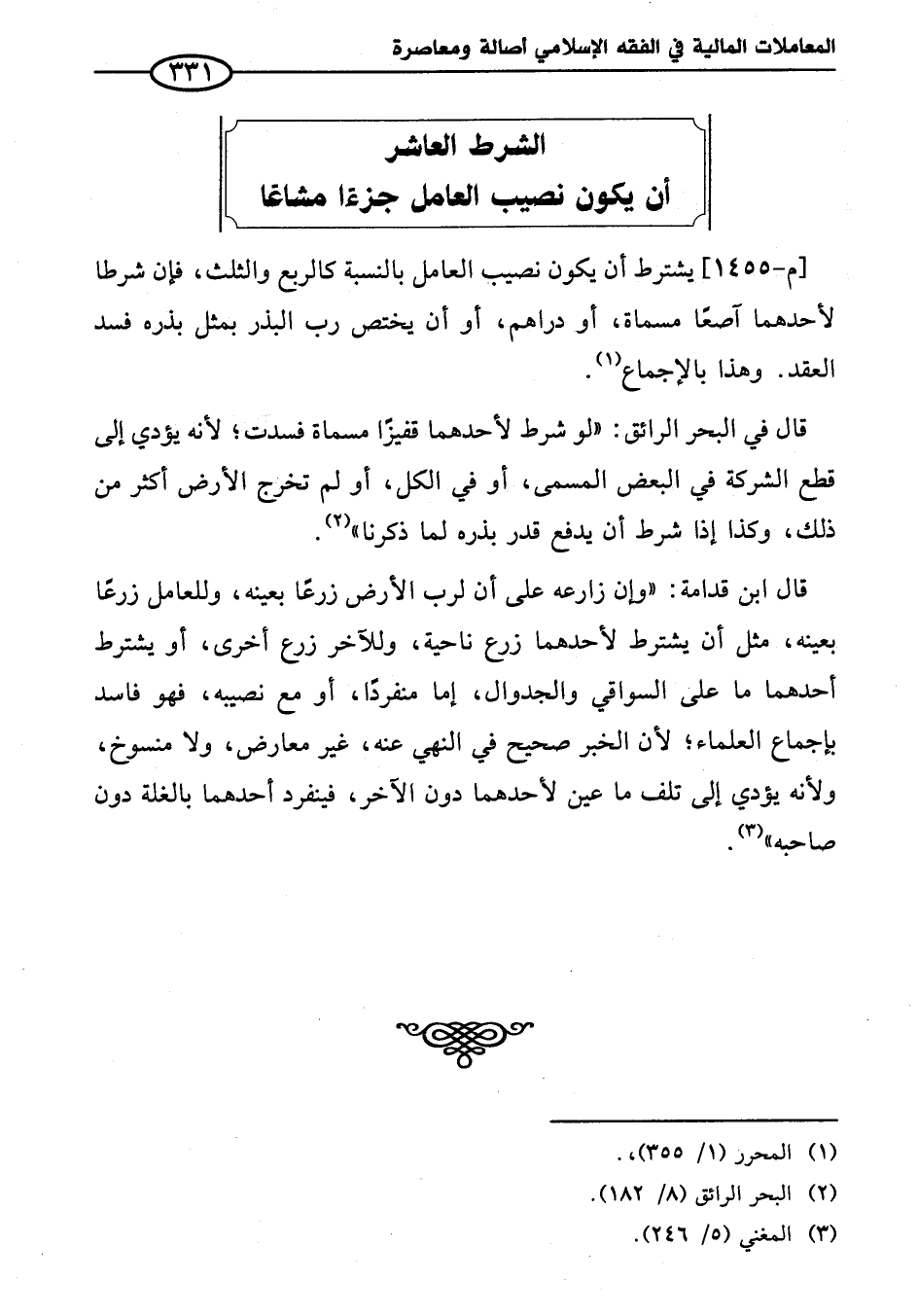 الشرط العاشر أن يكون نصيب العامل جزءًا مشاعًا