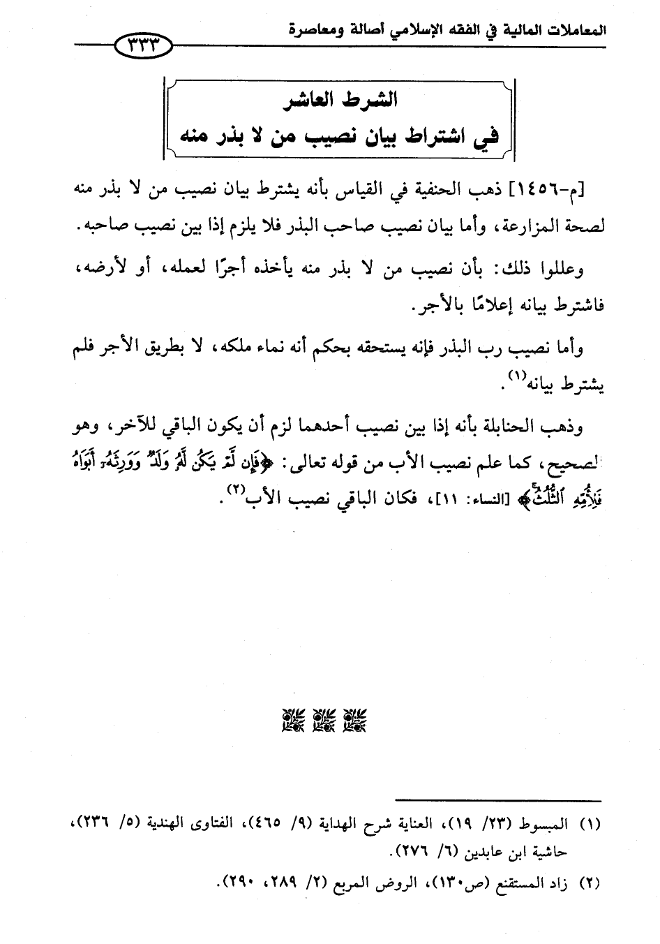 الشرط العاشر (*) في اشتراط بيان نصيب من لا بذر منه