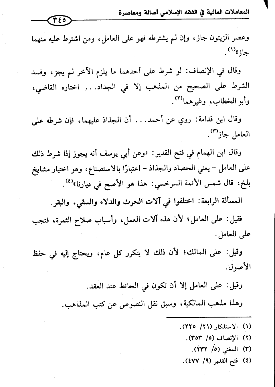 وقال ابن الهمام في فتح القدير: "وعن أبي يوسف أنه يجوز إذا شرط ذلك على العامل -يعني الحصاد والجذاذ- اعتبارًا بالاستصناع، وهو اختيار مشايخ بلخ، قال شمس الأئمة السرخسي: هذا هو الأصح في ديارنا" (¬٤).
