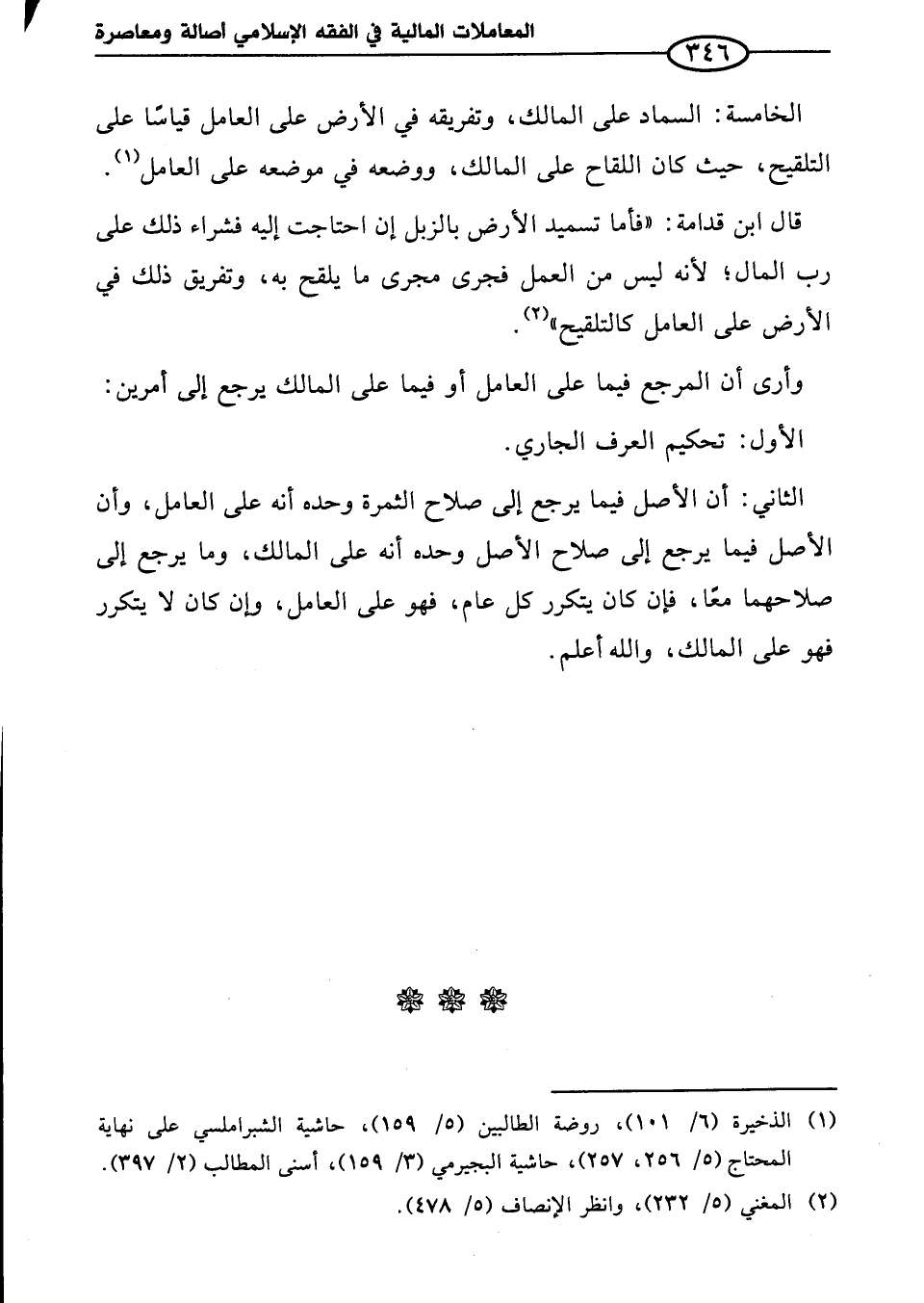 وأرى أن المرجع فيما على العامل أو فيما على المالك يرجع إلى أمرين: