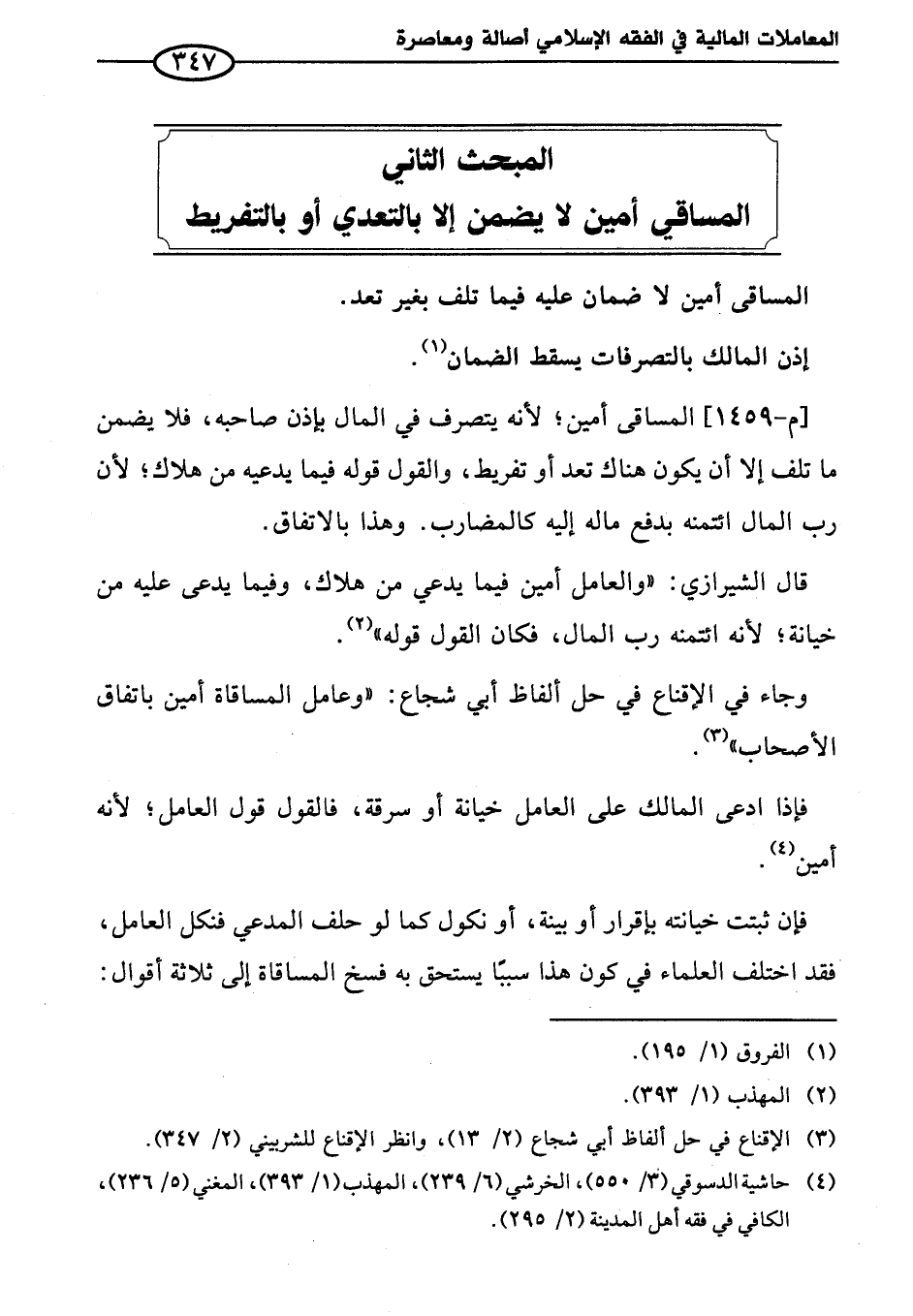 المبحث الثاني المساقي أمين لا يضمن إلا بالتعدي أو بالتفريط
