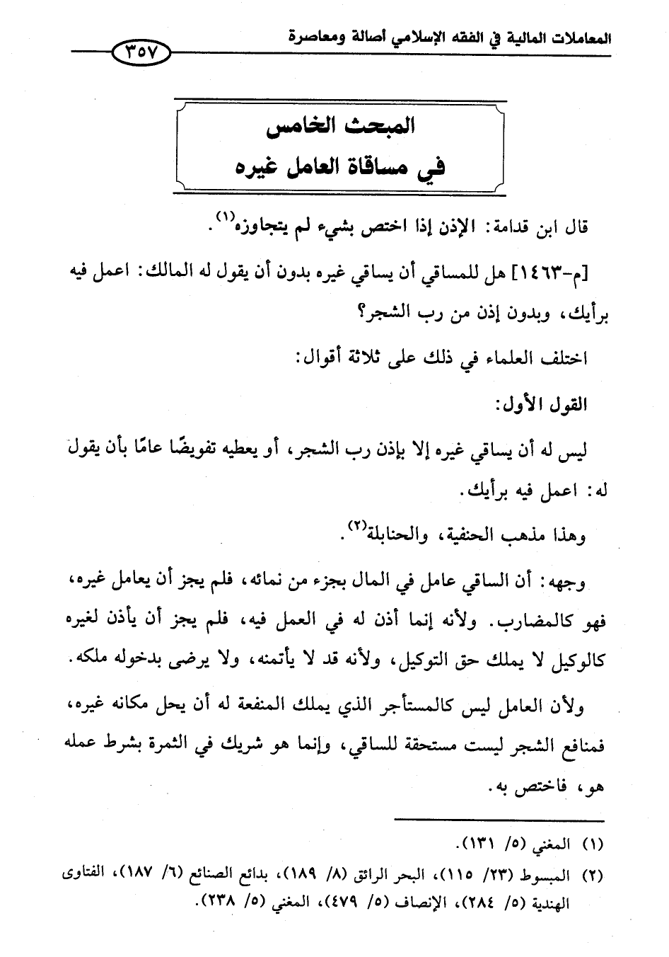 المبحث الخامس في مساقاة العامل غيره