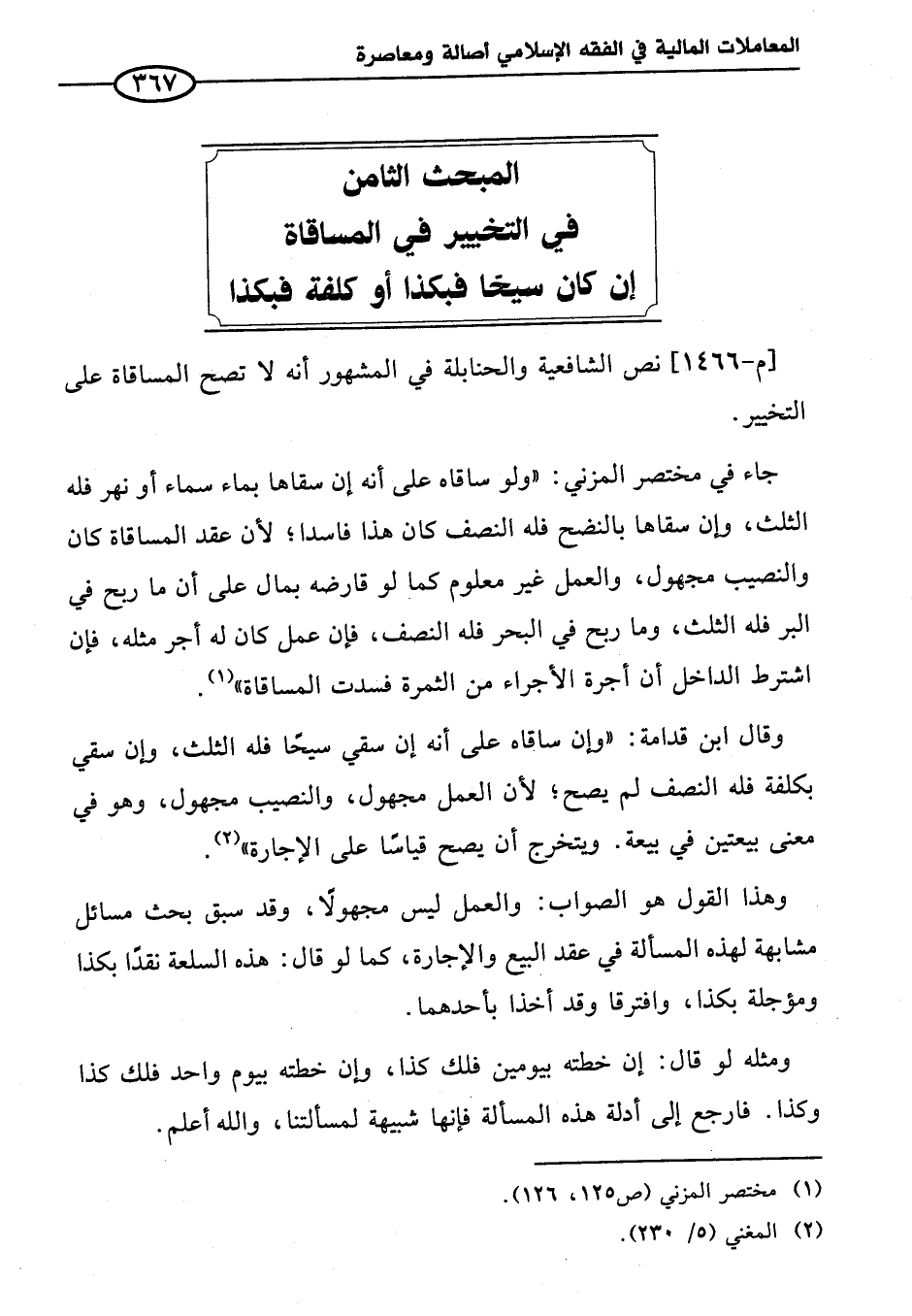 المبحث الثامن في التخيير في المساقاة إن كان سيحًا فبكذا أو كلفة فبكذا