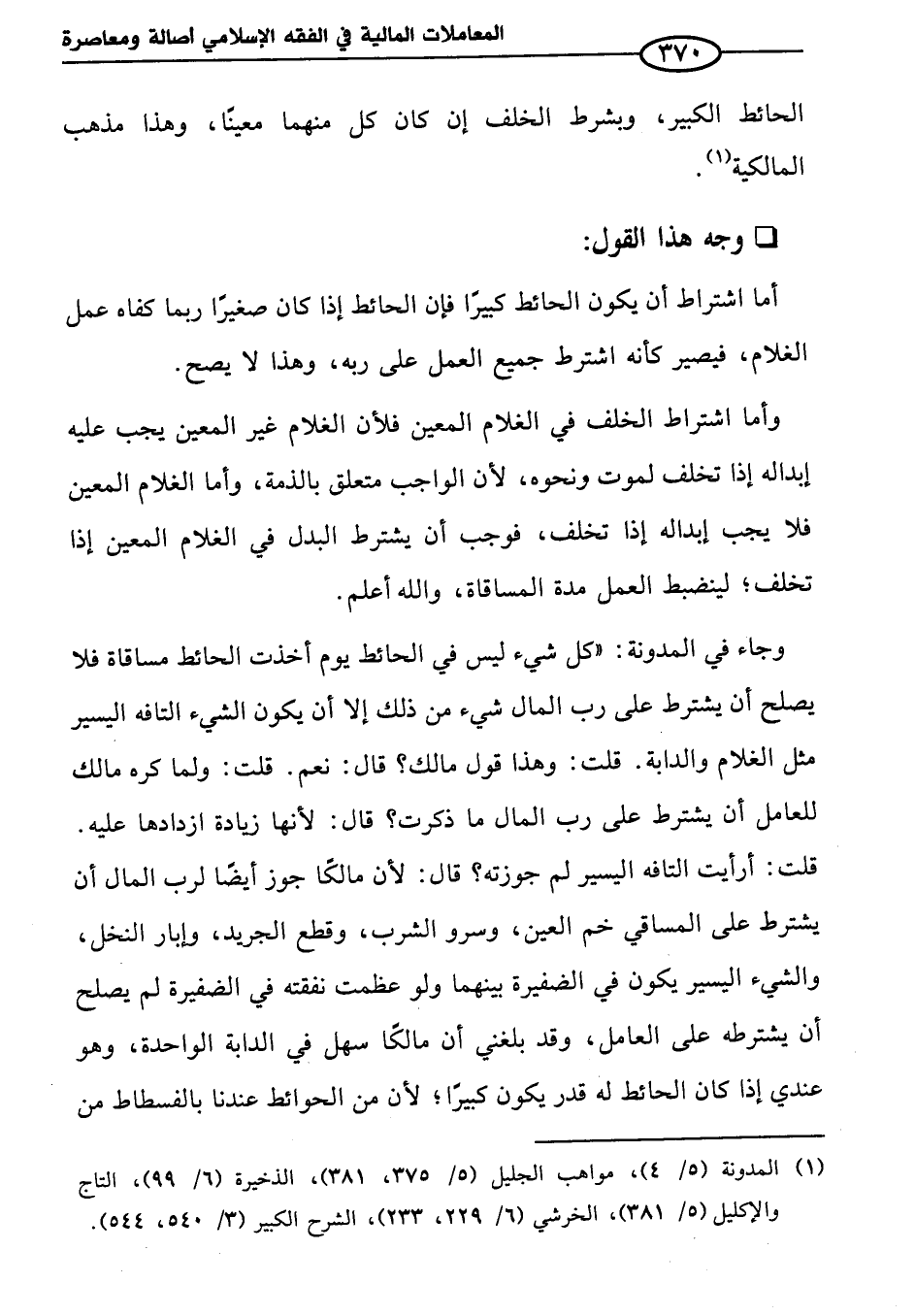(¬١) المدونة (٥/ ٤)، مواهب الجليل (٥/ ٣٧٥، ٣٨١)، الذخيرة (٦/ ٩٩)، التاج والإكليل (٥/ ٣٨١)، الخرشي (٦/ ٢٢٩، ٢٣٣)، الشرح الكبير (٣/ ٥٤٠، ٥٤٤).