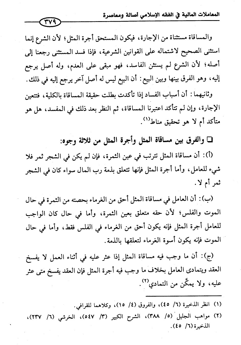 (¬٢) مواهب الجليل (٥/ ٣٨٨)، الشرح الكبير (٣/ ٥٤٧)، الخرشي (٦/ ٢٣٧)، الذخيرة (٦/ ٤٥).