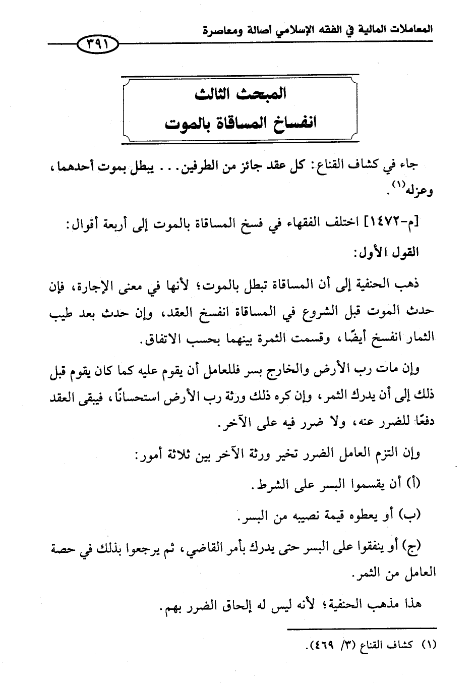المبحث الثالث انفساخ المساقاة بالموت