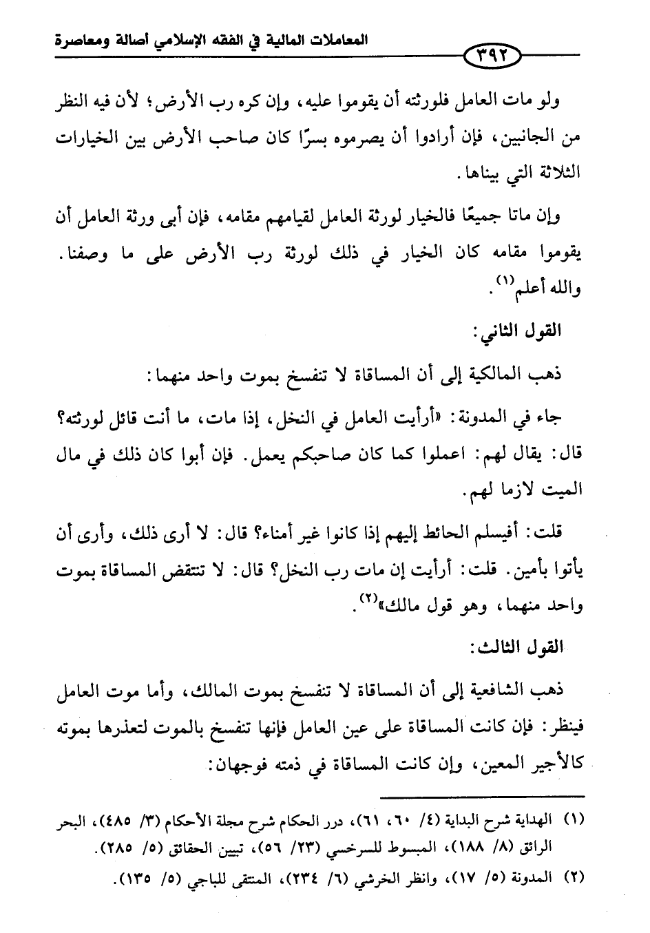 جاء في المدونة: "أرأيت العامل في النخل، إذا مات، ما أنت قائل لورثته؟