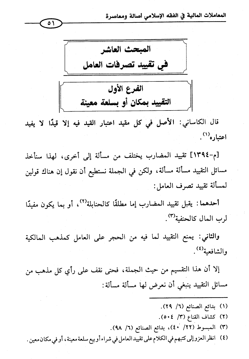 (¬٤) انظر العزو إلى كتبهم في الكلام على تقييد العامل في شراء أو بيع سلعة معينة، أو في مكان معين.