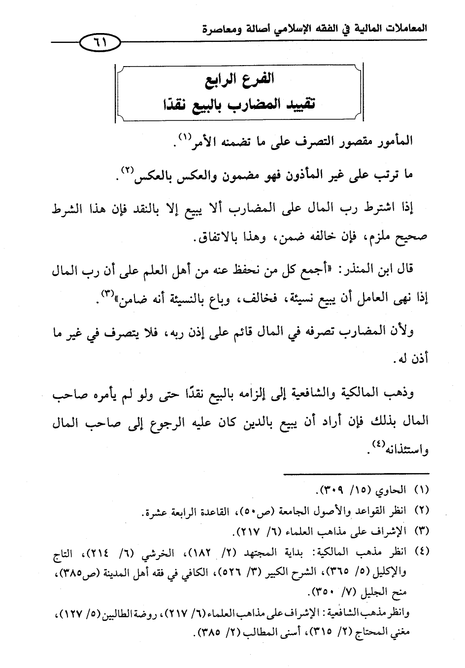 الفرع الرابع تقييد المضارب بالبيع نقدًا