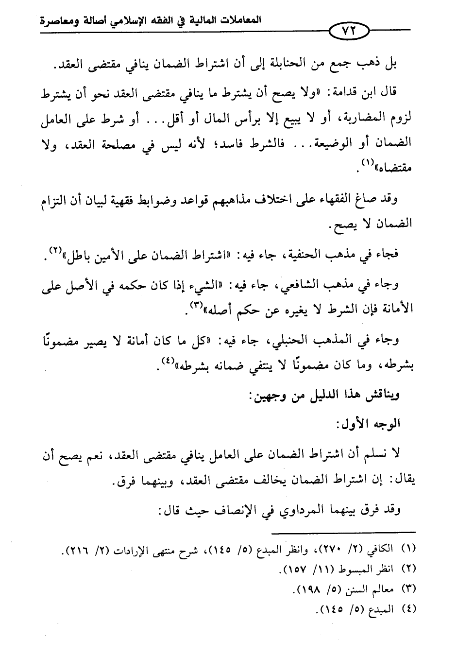 بل ذهب جمع من الحنابلة إلى أن اشتراط الضمان ينافي مقتضى العقد.