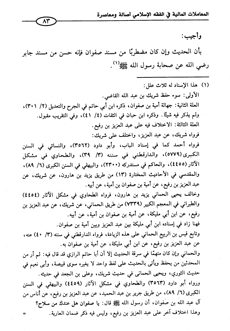 ورواه أبو داود (٣٥٦٣) والطحاوي في مشكل الآثار (٤٤٥٩) والبيهقي في السنن الكبرى (٦/ ٨٩)، من طريق جرير بن عبد الحميد، عن عبد العزيز بن رفيع، عن أناس من آل عبد الله بن صفوان، أن رسول الله - صلى الله عليه وسلم - قال: يا صفوان هل عندك من سلاح؟
