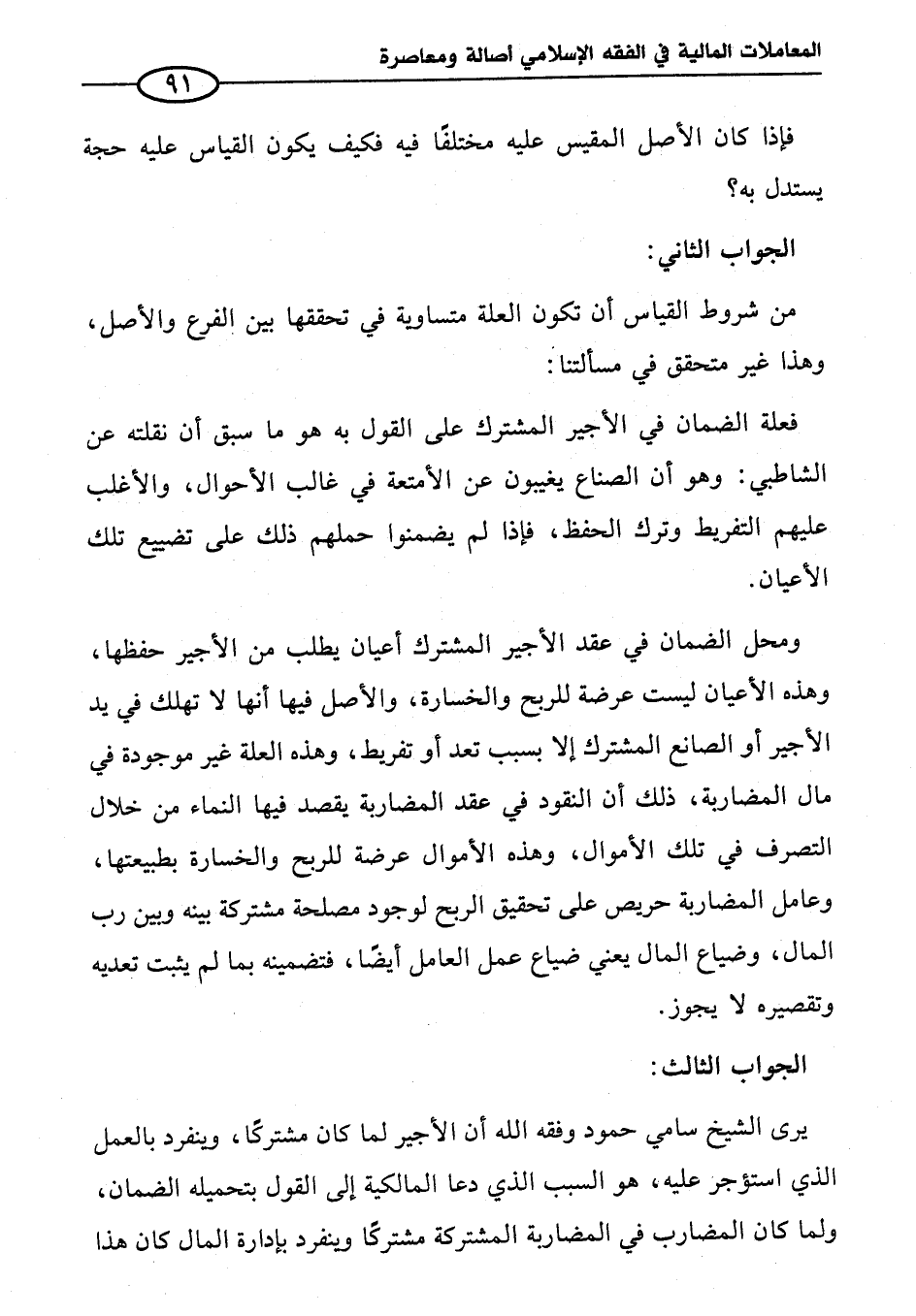 يرى الشيخ سامي حمود وفقه الله أن الأجير لما كان مشتركًا، وينفرد بالعمل الذي استؤجر عليه، هو السبب الذي دعا المالكية إلى القول بتحميله الضمان، ولما كان المضارب في المضاربة المشتركة مشتركًا وينفرد بإدارة المال كان هذا