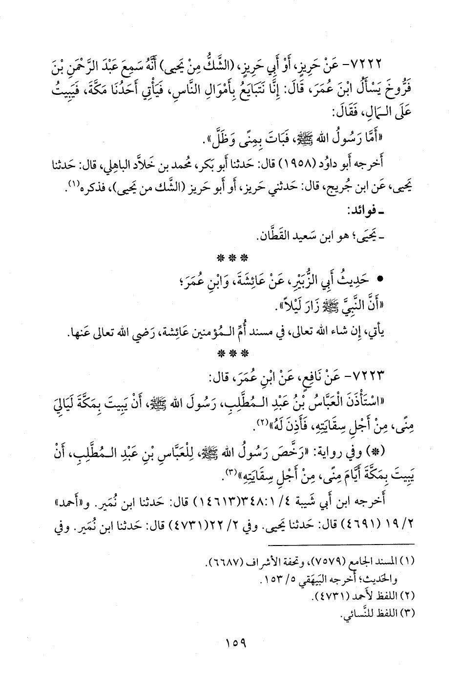 ٧٢٢٢ - عن حريز، أو أبي حريز، (الشك من يحيى) أنه سمع عبد الرَّحمَن بن فروخ يسأل ابن عمر، قال: إنا نتبايع بأموال الناس، فيأتي أحدنا مكة، فيبيت على المال، فقال: