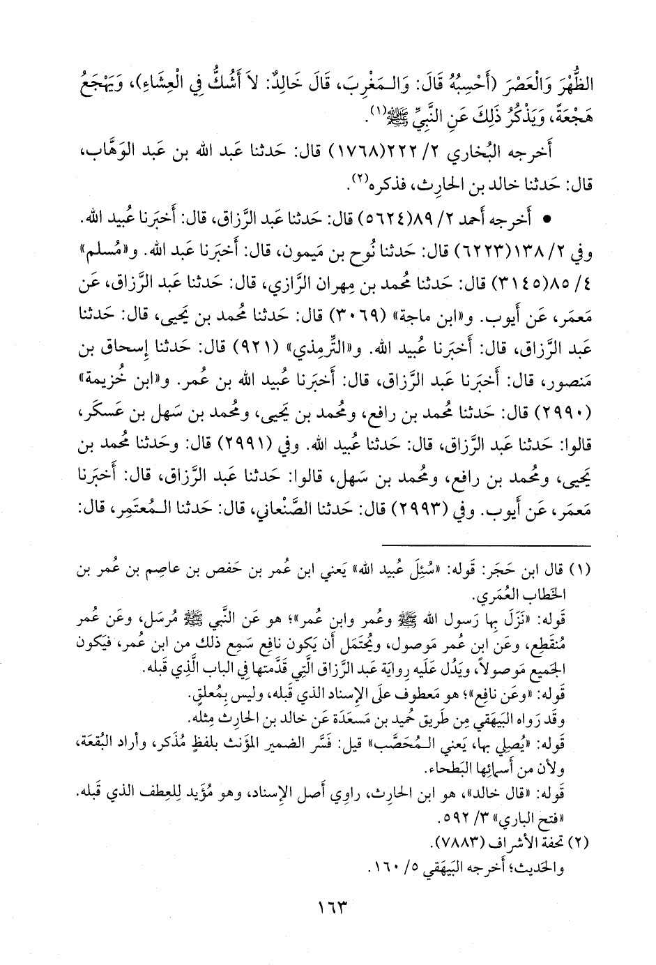 • أخرجه أحمد (٥٦٢٤) قال: حدثنا عبد الرزاق، قال: أخبرنا عُبيد الله. وفي ٢/ ١٣٨ (٦٢٢٣) قال: حدثنا نوح بن ميمون، قال: أخبرنا عبد الله. و «مسلم» ٤/ ٨٥ (٣١٤٥) قال: حدثنا محمد بن مِهران الرازي، قال: حدثنا عبد الرزاق، عن مَعمَر، عن أيوب. و «ابن ماجة» (٣٠٦٩) قال: حدثنا محمد بن يحيى، قال: حدثنا عبد الرزاق، قال: أخبرنا عُبيد الله. و «التِّرمِذي» (٩٢١) قال: حدثنا إسحاق بن منصور، قال: أخبرنا عبد الرزاق، قال: أخبرنا عُبيد الله بن عمر. و «ابن خزيمة» (٢٩٩٠) قال: حدثنا محمد بن رافع، ومحمد بن يحيى، ومحمد بن سهل بن عسكر، قالوا: حدثنا عبد الرزاق، قال: حدثنا عُبيد الله. وفي (٢٩٩١) قال: وحدثنا محمد بن يحيى، ومحمد بن رافع، ومحمد بن سهل، قالوا: حدثنا عبد الرزاق، قال: أخبرنا مَعمَر، عن أيوب. وفي (٢٩٩٣) قال: حدثنا الصَّنْعاني، قال: حدثنا المُعتَمِر، قال: