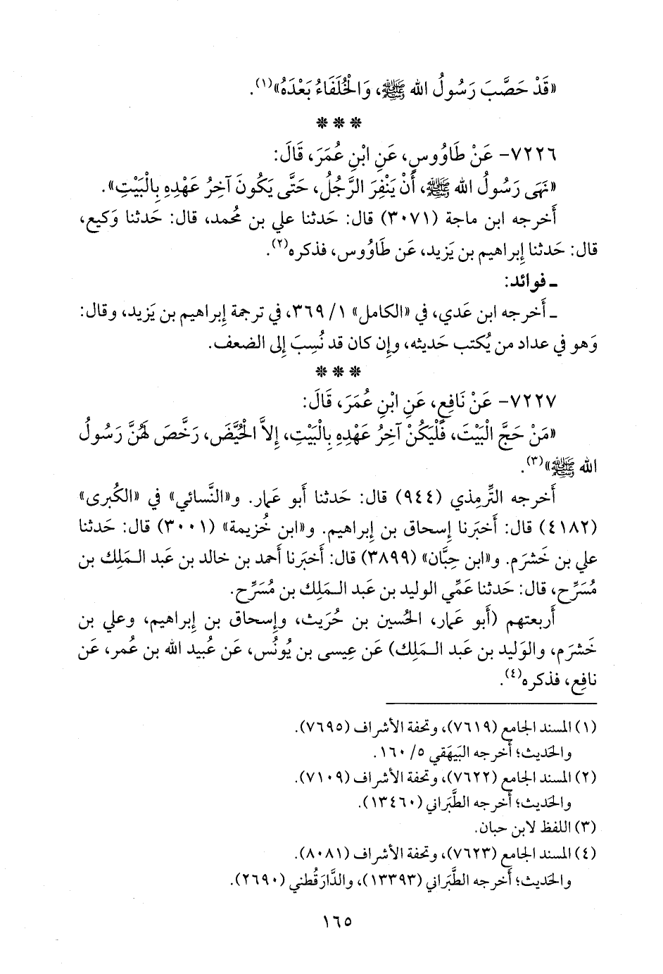 «نهى رسول الله صَلى الله عَليه وسَلم أن ينفر الرجل، حتى يكون آخر عهده بالبيت».