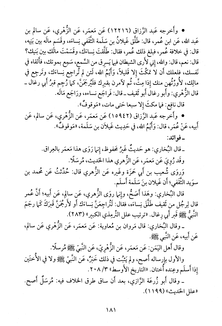 قال البخاري: وهذا أصح، وإنما روى الزُّهْري، عن سالم، عن أبيه؛ أن عمر قال لرجل من ثقيف طلق نساءه، فقال: لتراجعن نساءك أو لأرجمن قبرك كما رجم النبي صَلى الله عَليه وسَلم قبر أبي رغال. «ترتيب علل التِّرمِذي الكبير» (٢٨٣).
