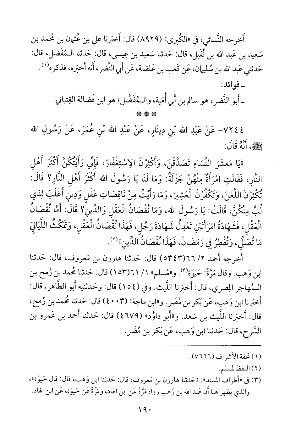٧٢٤٤ - عن عبد الله بن دينار، عن عبد الله بن عمر، عن رسول الله صَلى الله عَليه وسَلم أنه قال: