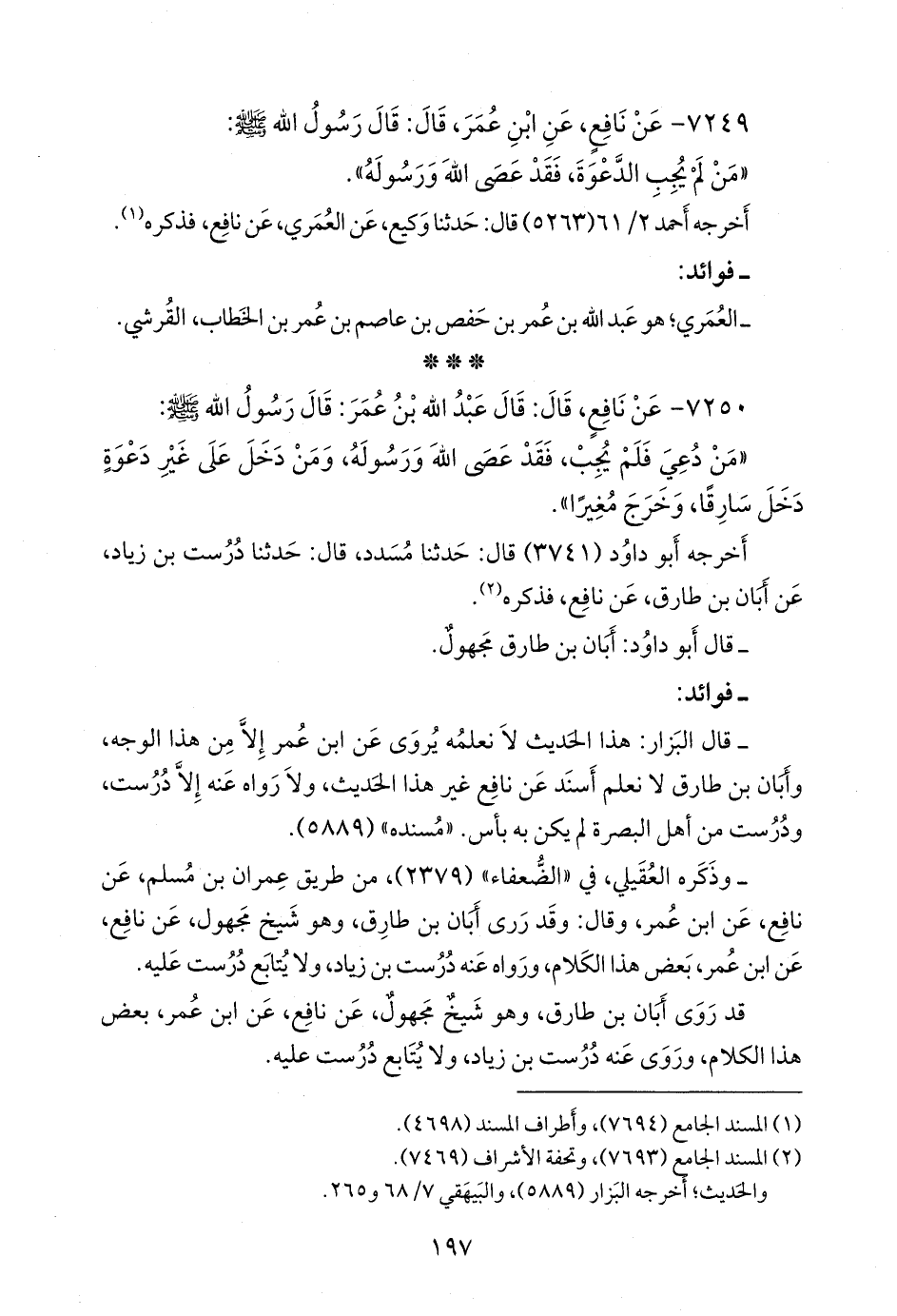 ٧٢٤٩ - عن نافع، عن ابن عمر، قال: قال رسول الله صَلى الله عَليه وسَلم: