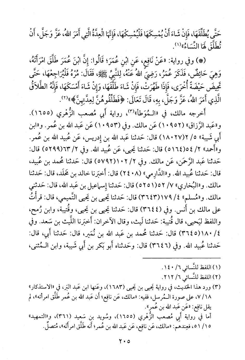 (¬٢) ورد هذا الحديث، في رواية يحيى بن يحيى (١٦٨٣)، وعنها ابن عبد البَر في «الاستذكار» ١٨/ ٧، على صورة المرسل، ففيه: «مالك، عن نافع؛ أن عبد الله بن عمر طلق امرأته»، لم يقل نافع: «عن عبد الله بن عمر».