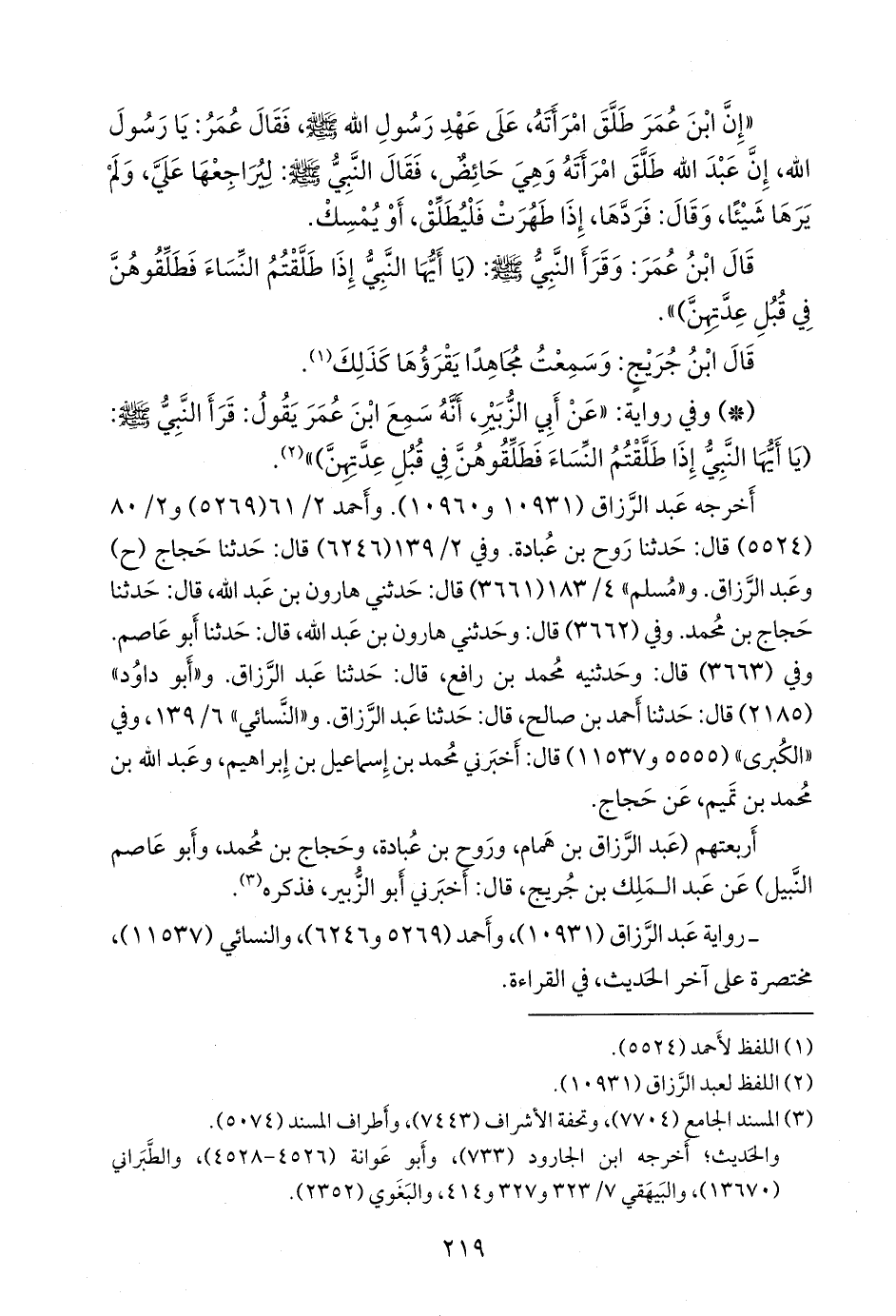 - قال أَبو داود: روى هذا الحديث عن ابن عمر: يونس بن جبير، وأنس بن سِيرين، وسعيد بن جبير، وزيد بن أسلم، وأَبو الزبير, ومنصور، عن أبي وائل، معناهم كلهم: أن النبي صَلى الله عَليه وسَلم أمره أن يراجعها حتى تطهر، ثم إن شاء طلق، وإن شاء أمسك.