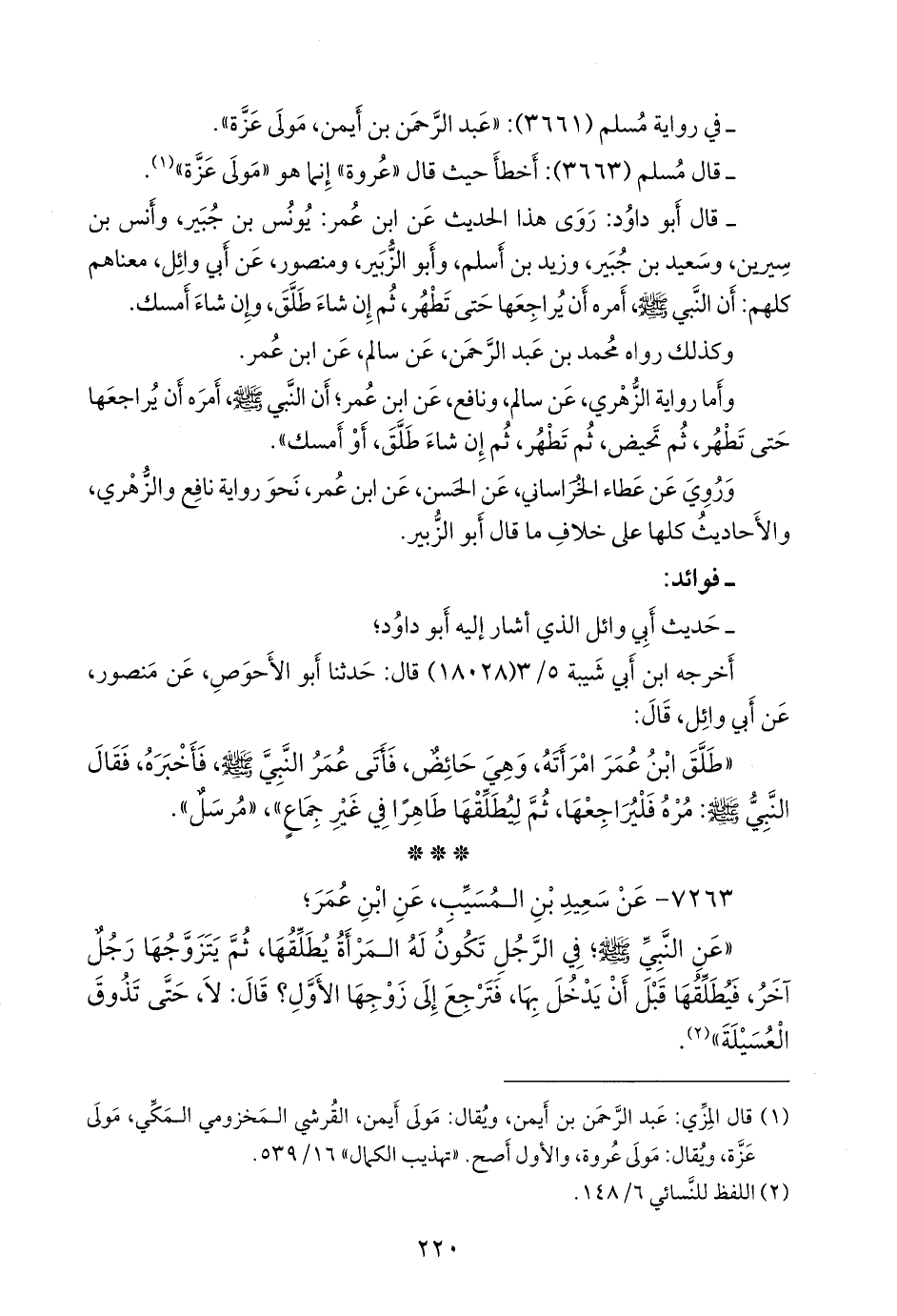 (¬٣) المسند الجامع (٧٧١١)، وتحفة الأشراف (٧٠٨٣)، وأطراف المسند (٤٣٠٠).