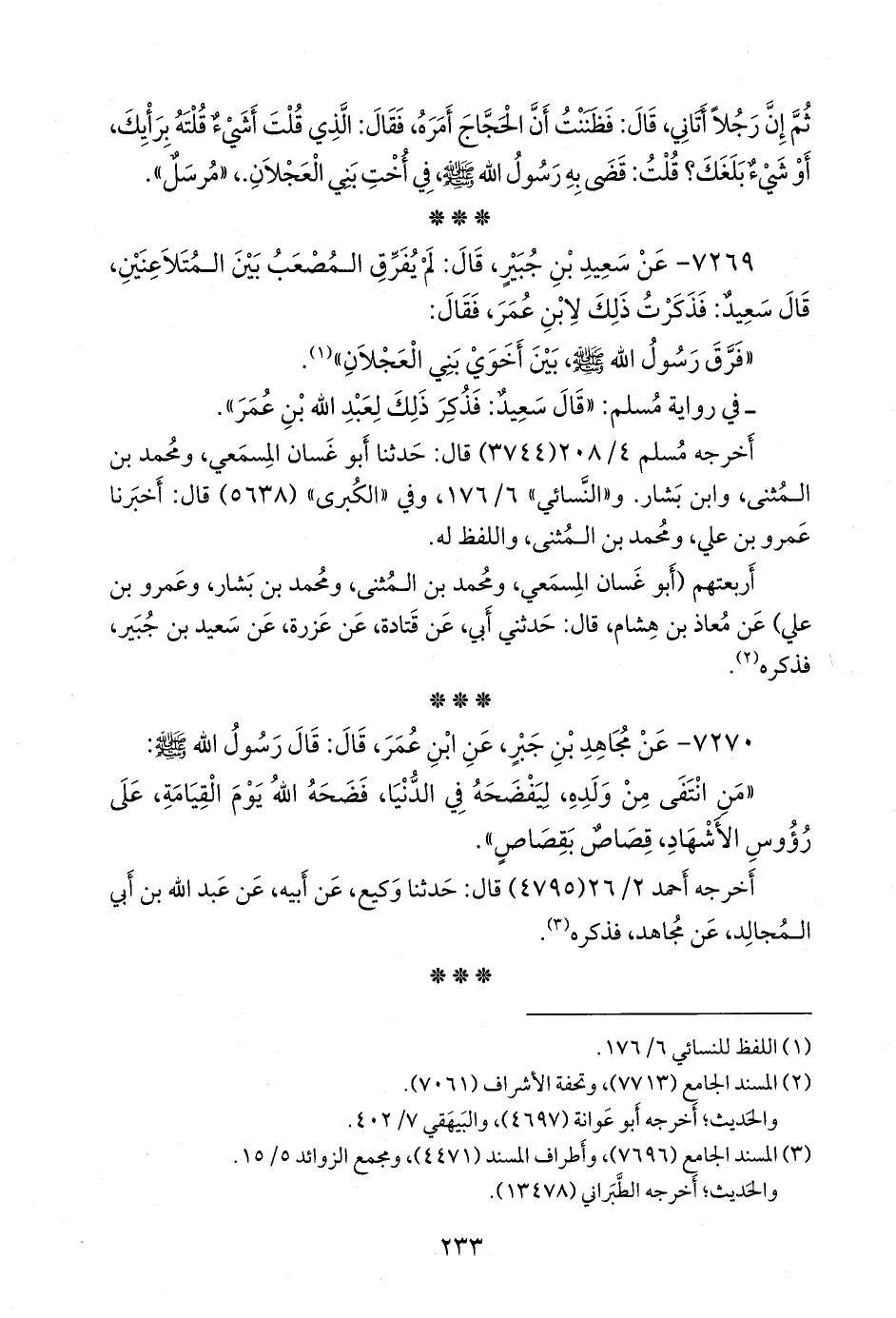 أربعتهم (أَبو غسان المسمعي، ومحمد بن المثنى، ومحمد بن بشار، وعَمرو بن علي) عن معاذ بن هشام، قال: حدثني أبي، عن قتادة، عن عَزرة، عن سعيد بن جبير، فذكره (¬٢).