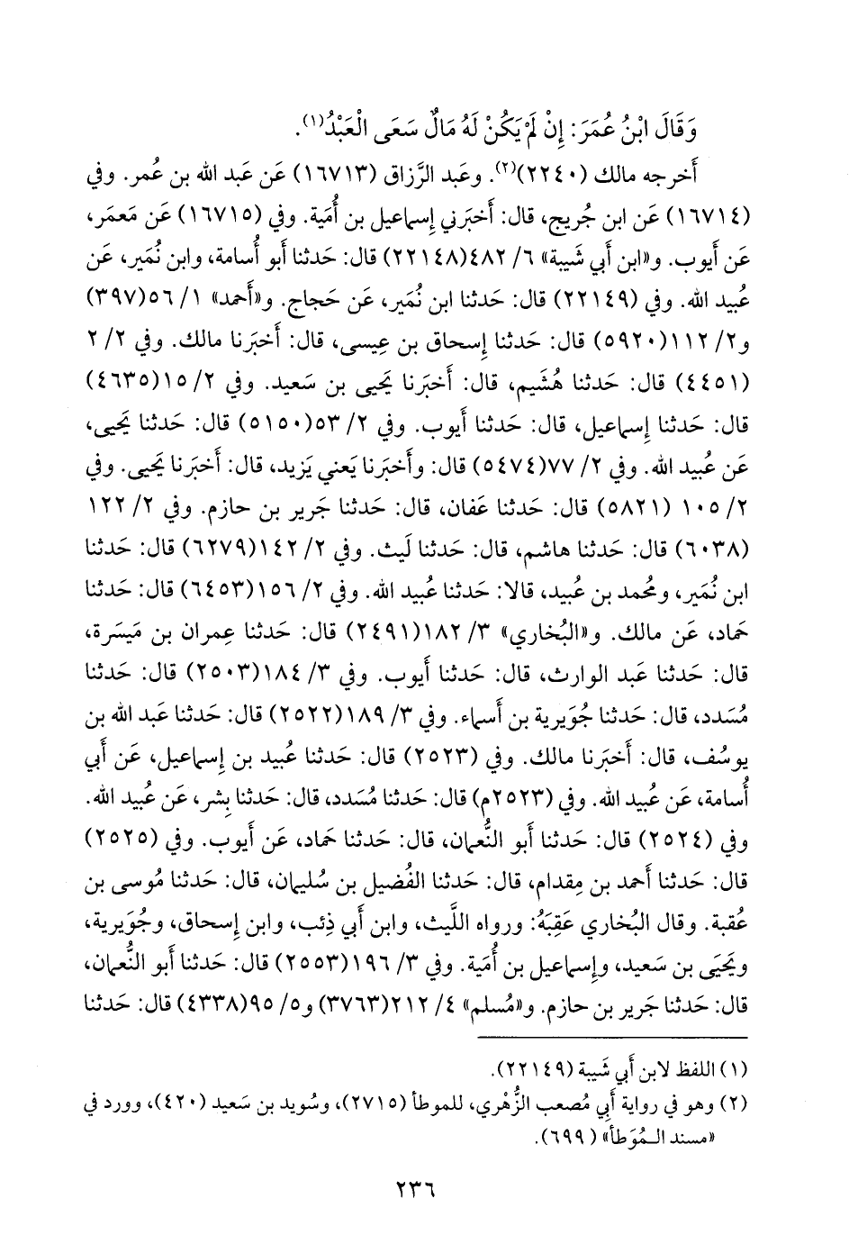 وفي (٢٥٢٣ م) قال: حدثنا مُسدد، قال: حدثنا بشر، عن عُبيد الله. وفي (٢٥٢٤) قال: حدثنا أَبو النعمان، قال: حدثنا حماد، عن أيوب. وفي (٢٥٢٥) قال: حدثنا أحمد بن مقدام، قال: حدثنا الفضيل بن سليمان، قال: حدثنا موسى بن عُقبة. وقال البخاري عقبه: ورواه الليث، وابن أبي ذِئب، وابن إسحاق، وجويرية، ويحيى بن سعيد، وإسماعيل بن أُمية. وفي ٣/ ١٥٠ (٢٥٥٣) قال: حدثنا أَبو النعمان، قال: حدثنا جَرير بن حازم. و «مسلم» ٤/ ٢١٢ (٣٧٦٣) و ٥/ ٩٥ (٤٣٣٨) قال: حدثنا