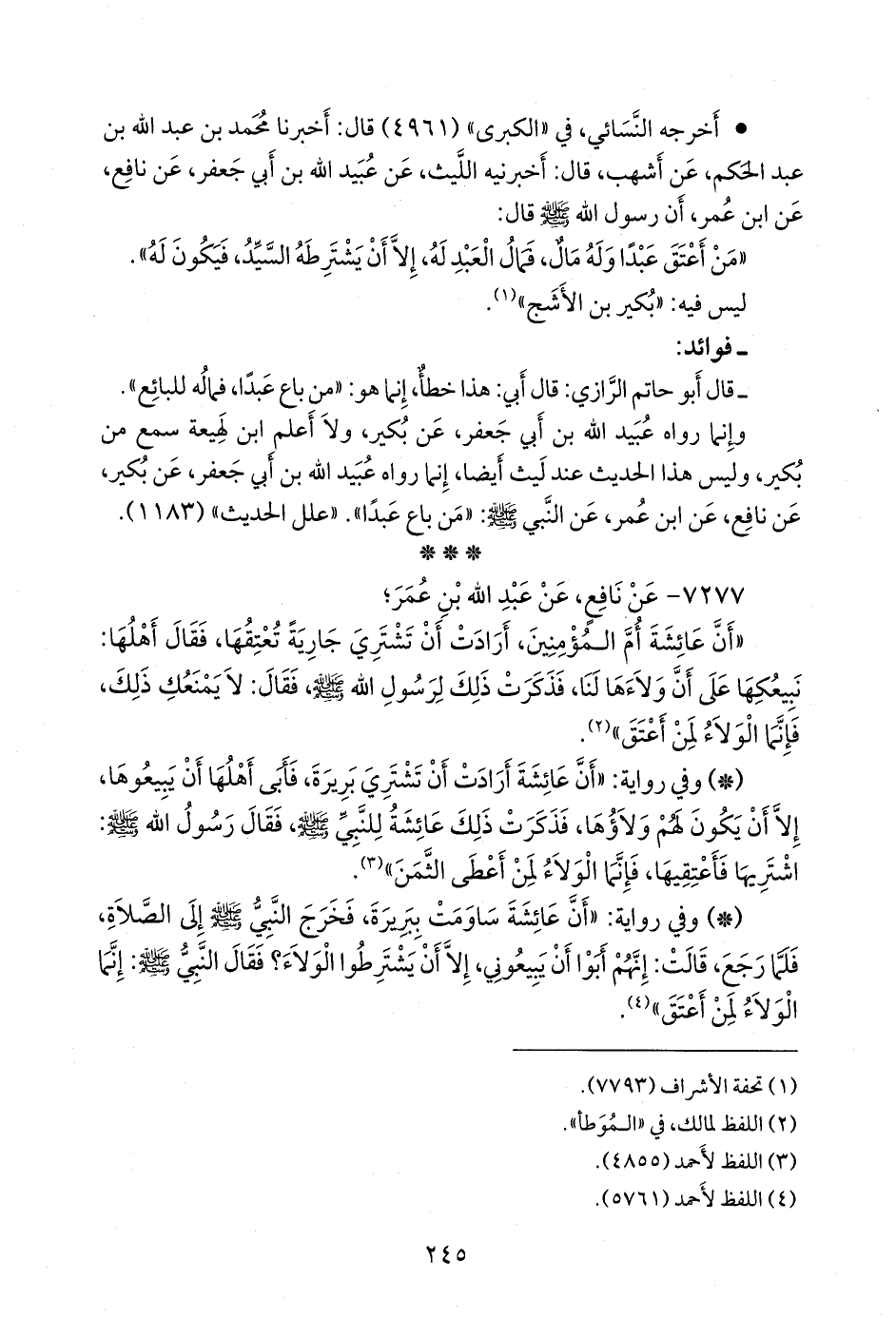 خمستهم (عُبيد الله بن عمر، وعبد العزيز بن أبي رَوَّاد، وليث بن سعد، وشعيب بن أبي حمزة، والضحاك بن عثمان) عن نافع، فذكره (¬٣).