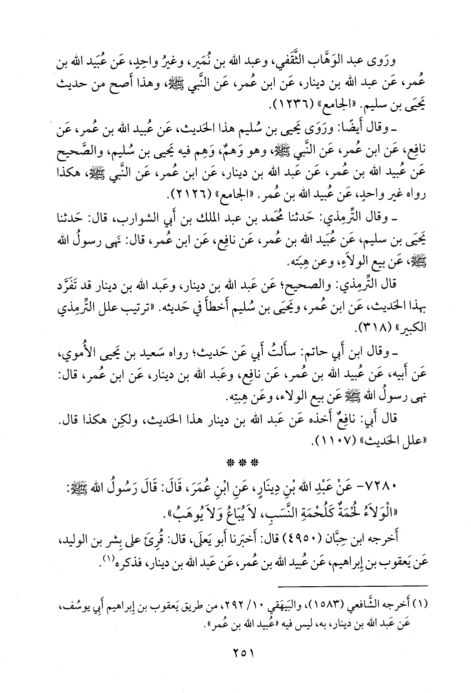 ٧٢٨٠ - عن عبد الله بن دينار، عن ابن عمر، قال: قال رسول الله صَلى الله عَليه وسَلم:
