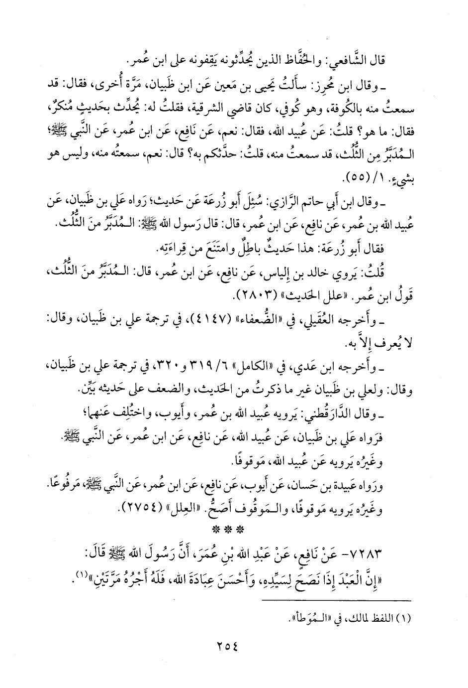 ٧٢٨٣ - عن نافع، عن عبد الله بن عمر، أن رسول الله صَلى الله عَليه وسَلم قال: